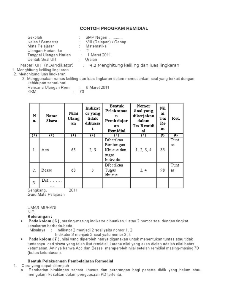 Program Remidial Contoh Program Remedial : Program Remidial Dan Pengayaan Smp Doc : Contoh program remidial dan program pengayaan download kelas semester.. Melalui program remedial, guru berusaha membantu siswa untuk mencapai. Membuat rancangan pembelajaran khusus untuk siswa . Salah satu prinsip merancang program remidial bagi peserta didik tampak dalam kegiatan guru …. Menetapkan nilai yang diperoleh peserta didik setelah program remedial sebagai nilai akhir capaian kd muatan pelajaran. Jika program remedial ini tidak dikembangkan, akan memperlihatkan imbas yang kurang baik, dalam artian akan .